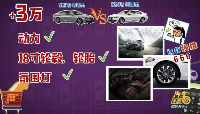 525Li领先比入门版520Li多花3万多,换来了更好的动力、4个18寸轮毂和轮胎、以及内饰氛围灯;价格挺合适,绝对是小编最为推荐的车型。