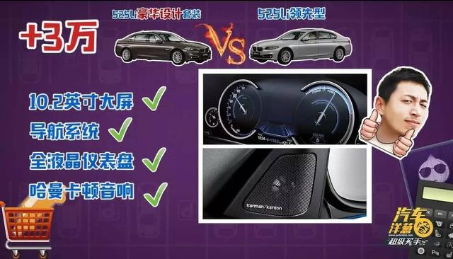525Li豪华设计套装,比525领先版增加了10.2英寸的大屏和导航系统、重点是还增加了全液晶仪表盘以及哈曼卡顿音响,这两样是挺受欢迎的配置,据说老款车主的选装率很高。