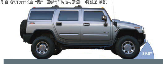 接近角越大,汽车在上下坡或进行越野行驶时,就越不容易发生“触头”事故,汽车的通过性能就越好。