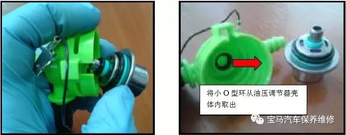 3、将油压调节器从调节器单元中取出并确保小 O 型环也取出。