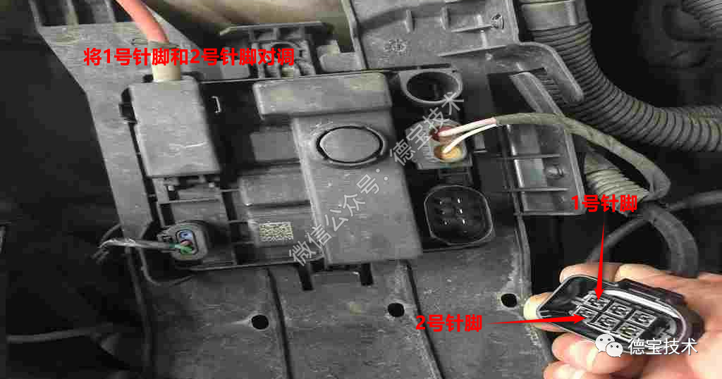 5.一号插针和二号插针对调的同时,拔掉报故障的传感器所以插头然后启动发动机一个个插上传感器插头目的是验证传感器有无短路(删除故障码)。