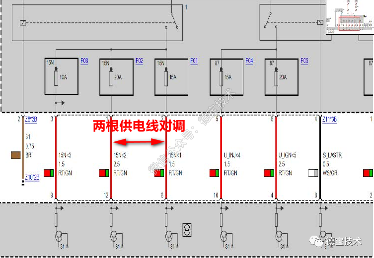 4.会不会是发动机的某个传感器短路引起PDM供电模块损坏呢?为了验证传感器有无问题我们对调了PDM供电模块Z11 3B 一号插针和二号插针对调(看图):